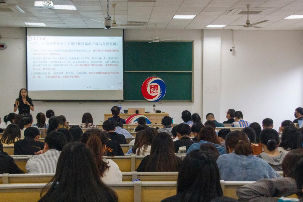 讲座上,姚庐清通过丰富生动的内容和通俗易懂的语言讲解百年来中国现代化道路的历史轨迹与发展意义,从多个维度详细解读了“七一”讲话精神,诠释了中国现代化道路历程,阐明了第二个百年目标对中国共产党员的五个要求,让学院师生对中国现代化建设有了更深层次理解,也对未来在建设中国现代化道路上有了更加明确的奋斗方向。