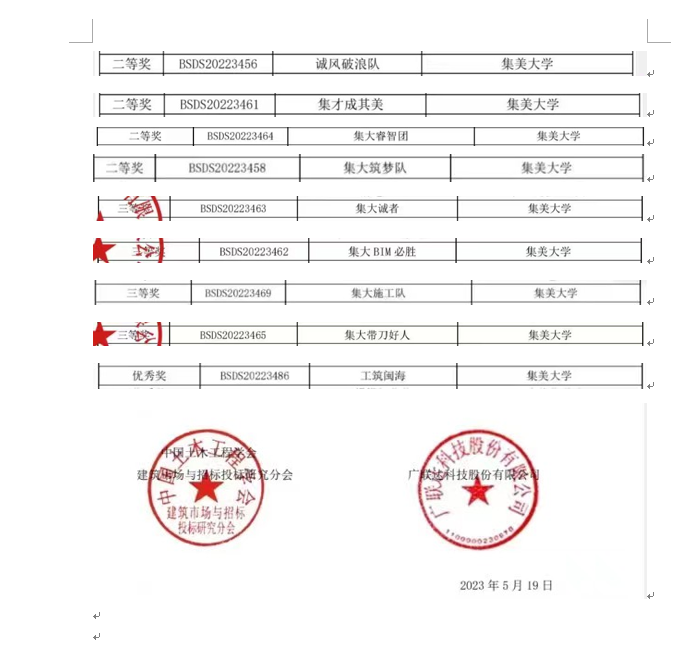 2023年6月4日上午,第九届全国高校BIM毕业设计创新大赛闭幕式暨颁奖典礼在北京建筑大学大兴校区举行,随着全国总决赛奖项花落各家,本届大赛也圆满落下帷幕。经过8个多月激烈角逐,港口与海岸工程学院工程管理专业学子在比赛中荣获佳绩,在参赛的九支队伍中,共获得二等奖四项、三等奖四项、优秀奖一项,是历届比赛中获奖面最多的一次。指导老师曹祥军、柯燕燕获得优秀指导教师称号。