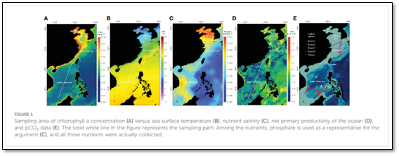 在本文的撰写过程中,我院极地与海洋研究院科研团队(以下简称研究院)和地理信息科学专业教学团队(以下简称地信专业)为本研究提供了极大的支持。张坤龙等同学以“遥感技术与应用”课程设计的课题为基础,通过文献阅读和与地信专业老师的交流,确立了深入研究的目标。遥感数据的处理与分析是地信学生的专业特长,但是对于海水动力、温度、盐度、二氧化碳分压、海洋净初级生产力变化等海洋科学领域知识的理解较为缺乏。学生在分析海洋变量对叶绿素a(以下简称Chl-a)浓度影响的过程中,多次向研究院老师请教,得到了耐心地解答。同时,研究院也为学生提供了科研场地,方便学生进行交流讨论。受老师们严谨科研精神和忘我工作态度的感染,2023年4月完成了论文的撰写并投稿。经过多轮的返修,文章最终被接收并发发表。