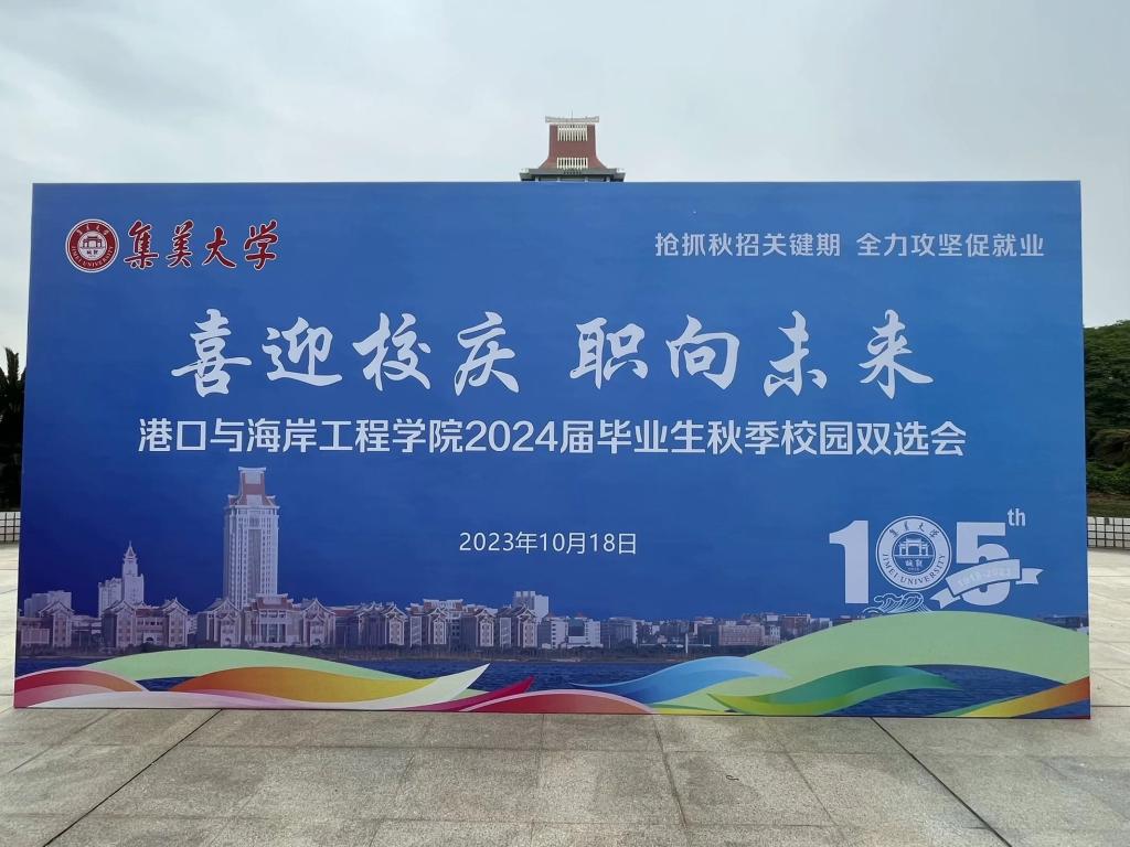10月18日下午,港口与海岸工程学院在集美大学主校区工海广场举办“喜迎校庆 职向未来”2024届毕业生秋季校园双选会,搭建毕业生与用人单位便捷、精准、高效的信息沟通与双向选择平台,全力促进毕业生高质量就业。