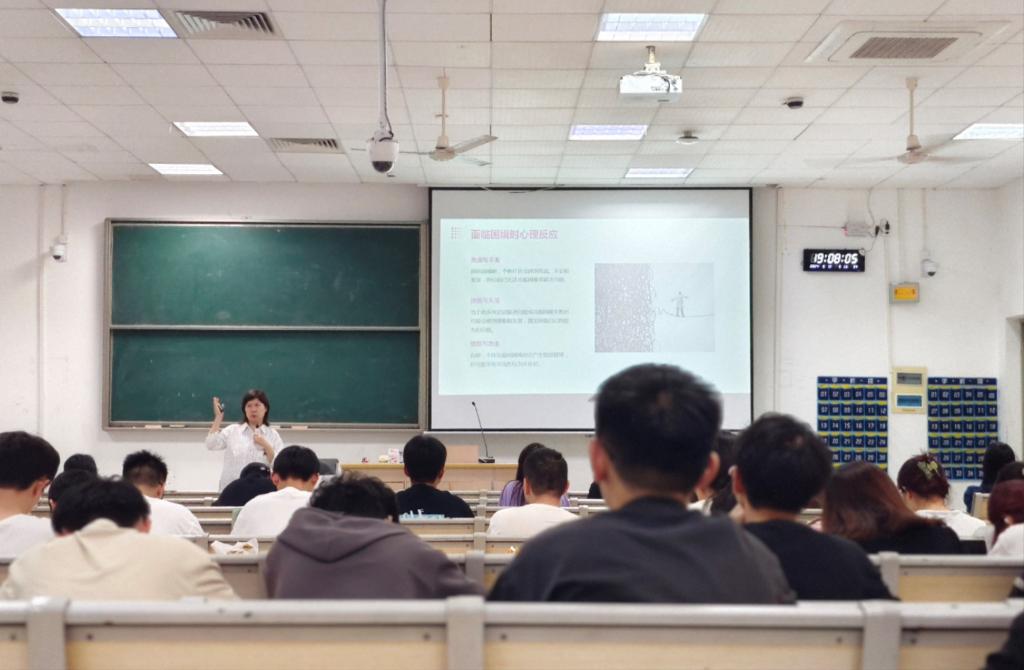 周鸣老师以面临困境时的心理反应为切入点,结合生动鲜活的案例,为在场同学展开层层剖析,并通过现场提问“谁会得心理问题与心理疾病”,引导学生主动思考,及时关注自身生理和心理的变化,积极掌握进行心理调适的正确方法。