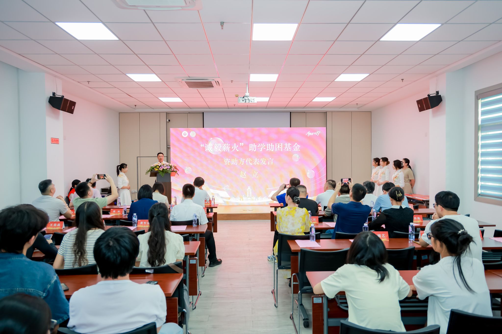 颁发仪式后,受资助的学生代表发言。他表示,“诚毅薪火”助学助困基金这份爱心不应只是在他们这里终止,而应该“薪火相传”像接力棒一样传递下去!”