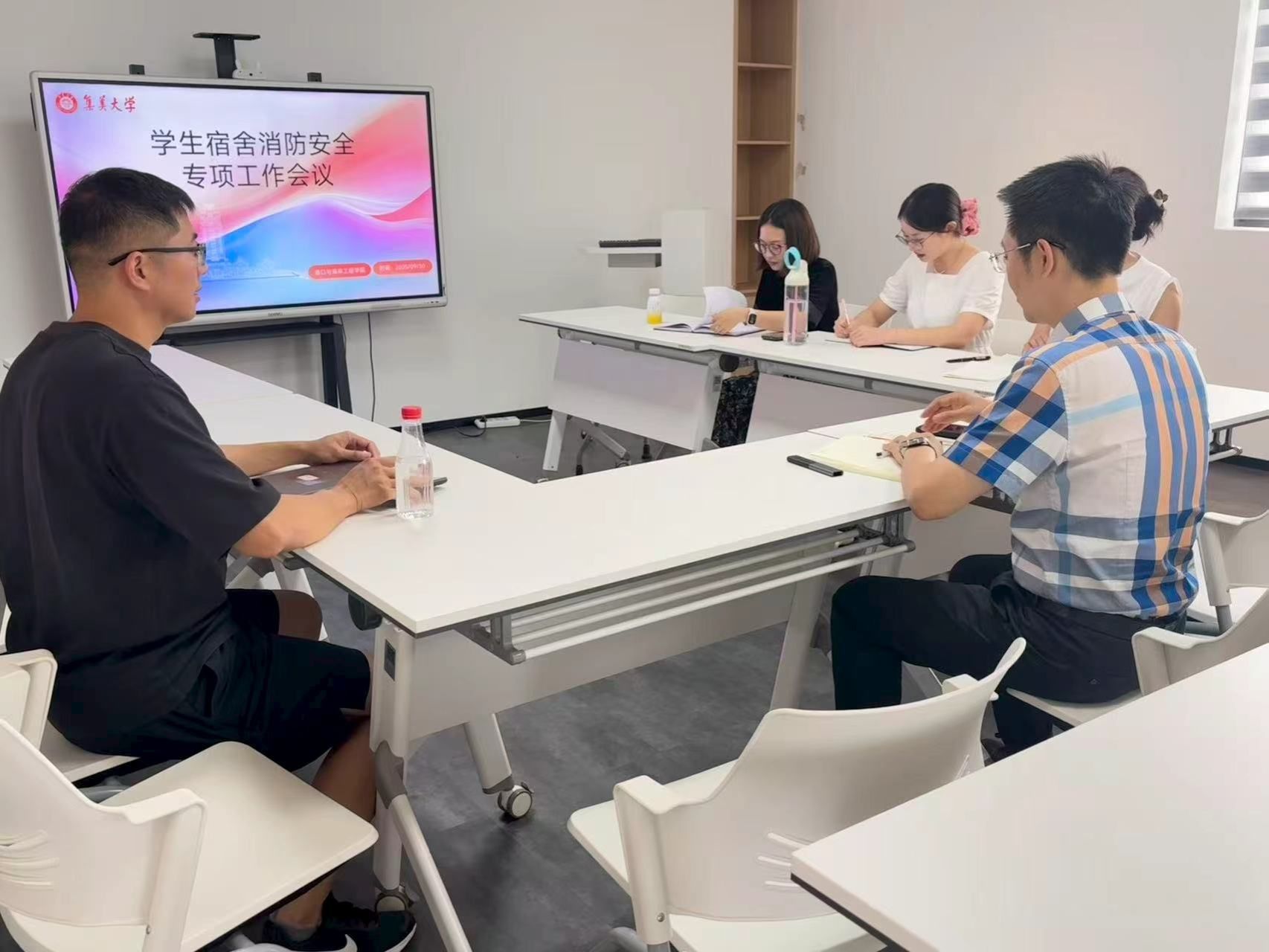 为进一步加强学生宿舍安全管理,消除安全隐患,保障学生人身与财产安全,2025年9月30日,港口与海岸工程学院在集友三号楼“一站式”学生社区召开学生宿舍消防安全专项工作会议,会议由院党委副书记郭联顺主持,全体辅导员参加。