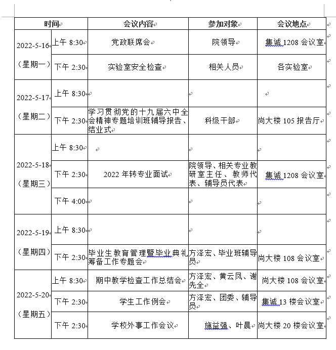 第十四周会议安排表