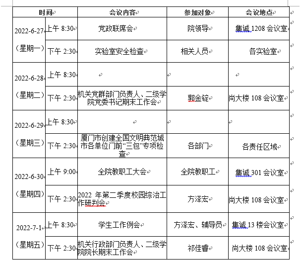 第一周会议安排表