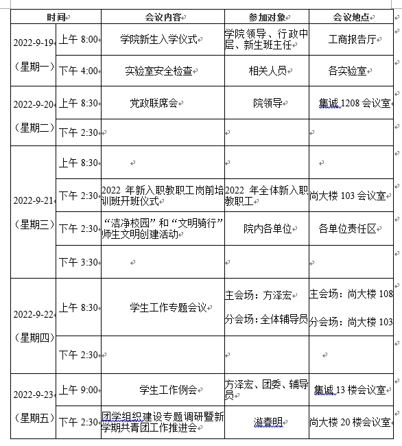 第三周会议安排表