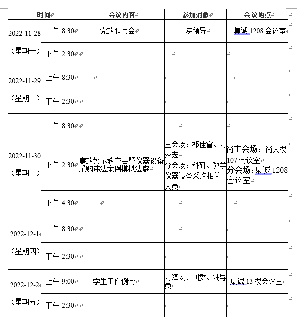 第十四周会议安排表
