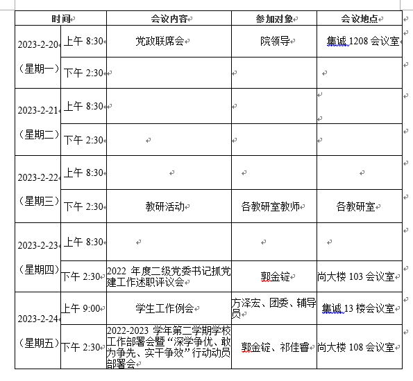 第二周会议安排表