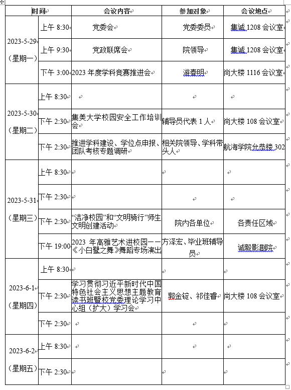 第十五周会议安排表
