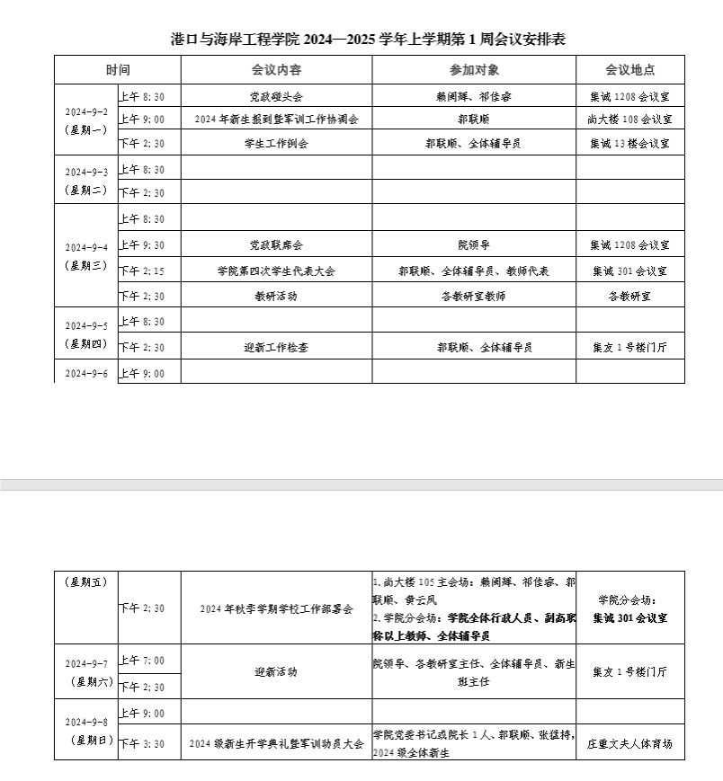 第一周会议安排表