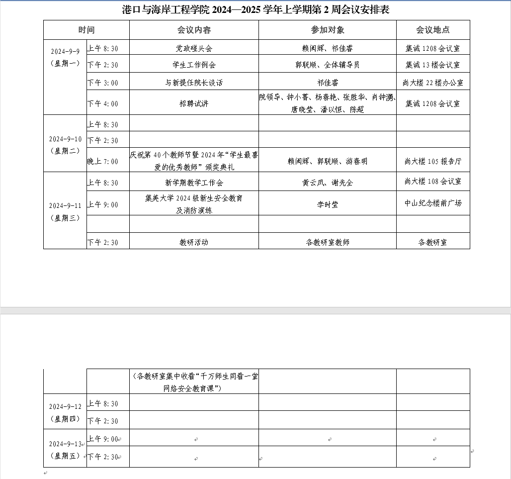 第二周会议安排表