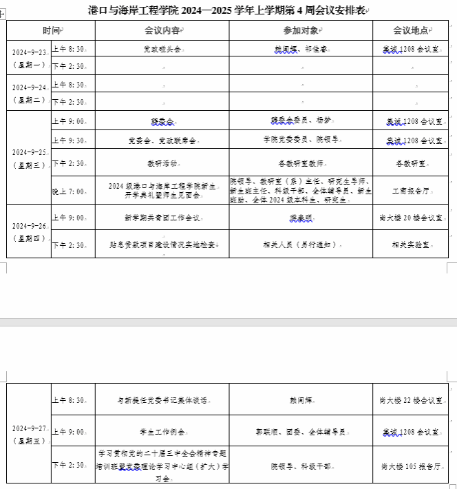 第四周会议安排表