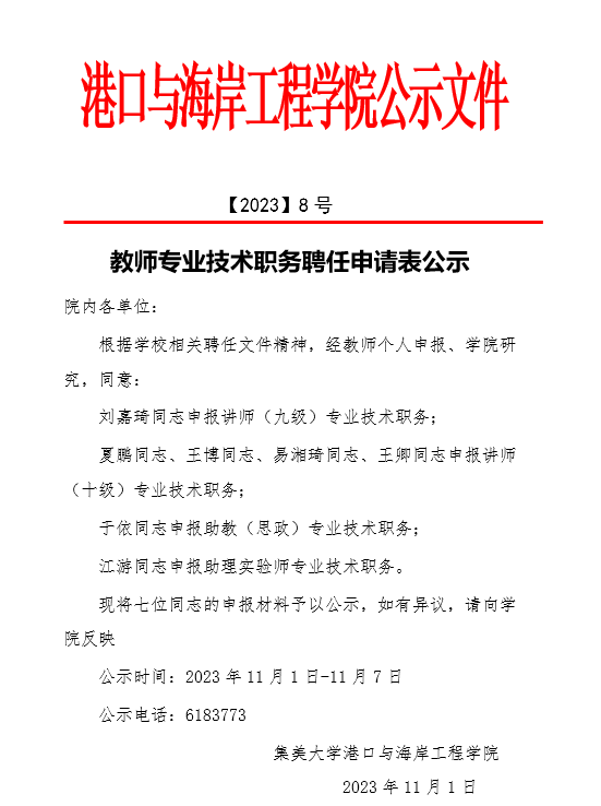 教师专业技术职务聘任申请表公示