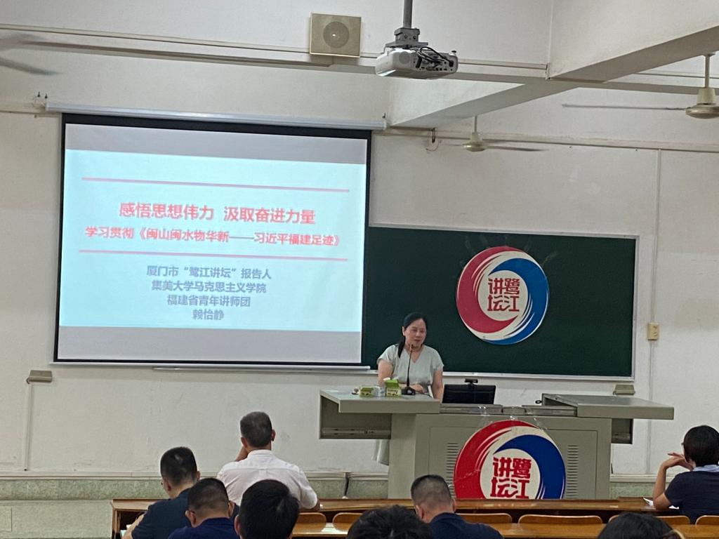 10月5日下午,港口与海岸工程学院举办主题为“感悟思想伟力,汲取奋进力量——学习《闽山闽水物华新——习近平福建足迹》”的鹭江讲坛。本次讲坛邀请马克思主义学院赖怡静博士主讲,由院党委书记郭金锭主持,学院全体教职工、全体学生党员、学习社全体成员参加讲坛。