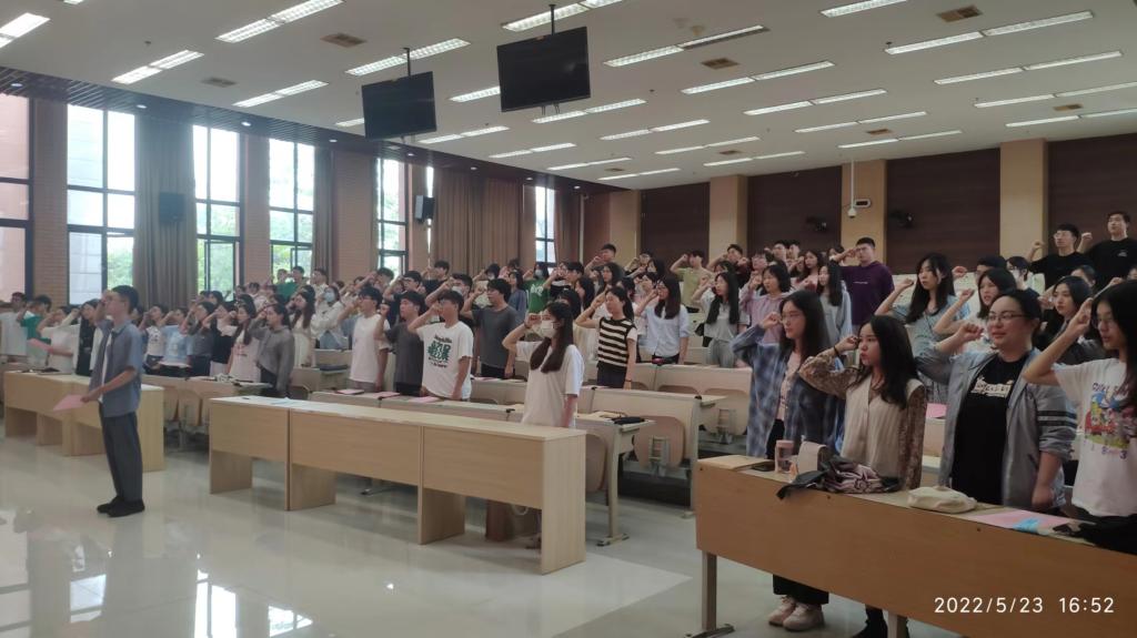 5月23日下午,港口与海岸工程学院在建发211举办 “喜迎二十大,青春心向党”毕业生党员重温入党誓词仪式。2018级全体毕业生党员参加本次活动。
