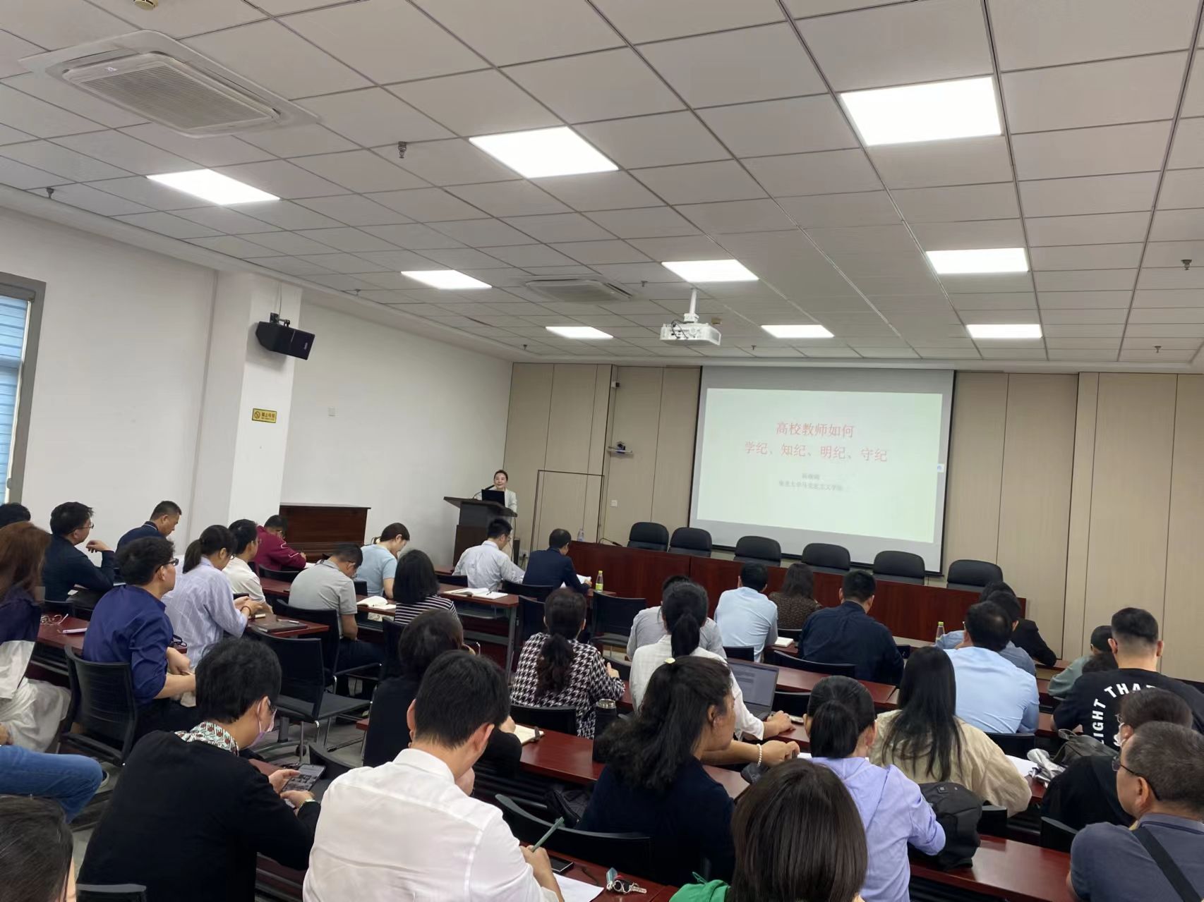 陈晓晓博士首先对《中国共产党纪律处分条例》中新增和修订的条文进行逐条详细的解读,其次用大量生动详实的高校教师党纪处分案例进一步阐明高校教师学纪、知纪、明纪、守纪的重要性。强调高校教师应当坚定政治方向、自觉爱国守法、传播优秀文化、潜心教书育人、关心爱护学生、坚持言行雅正、遵守学术规范、秉持公平诚信、坚守廉洁自律、积极奉献社会,帮助学院教职工明白党纪学习教育的重要意义,为大家在今后的工作中正确把握纪律和规矩起到了积极的警示作用。辅导报告后,学院各教研室代表针对师德师风建设进行交流分享。