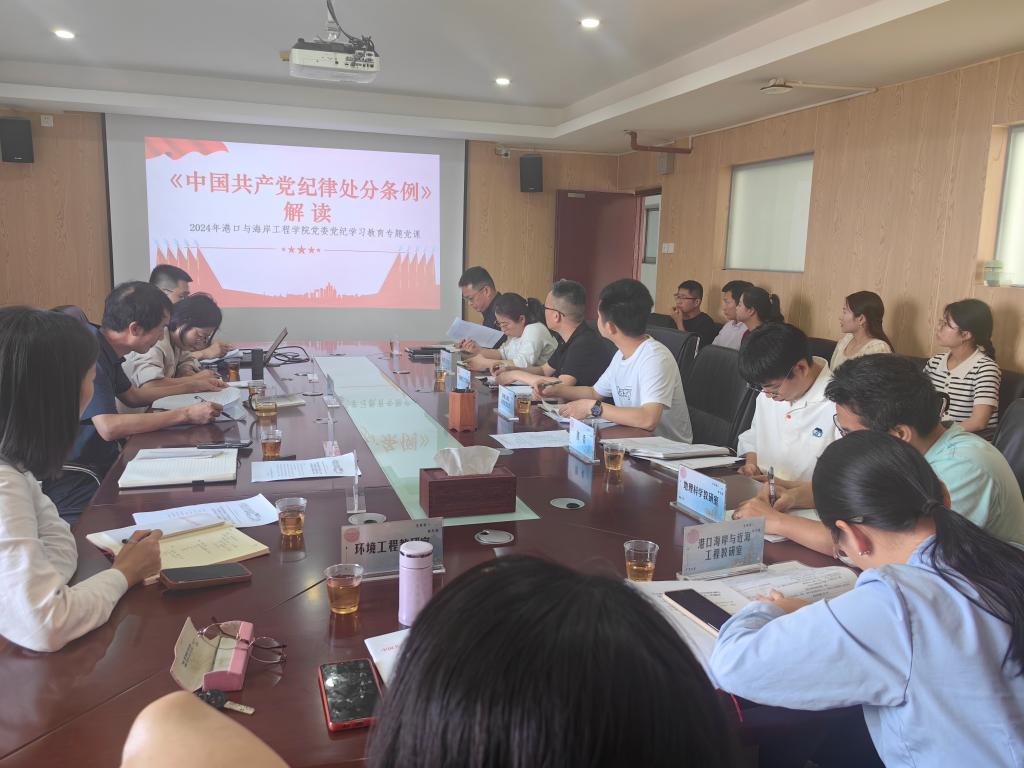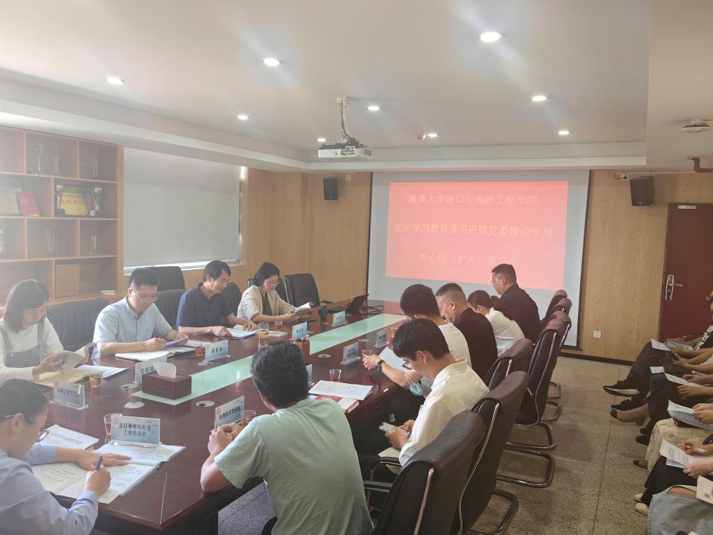 5月15日,港口与海岸工程学院举办党纪学习教育读书班暨党委理论学习中心组(扩大)学习会,会议由院党委书记赖闽辉主持,院领导、党委委员、纪委委员、党支部书记、教研室主任、各科室负责人和全体辅导员参加。