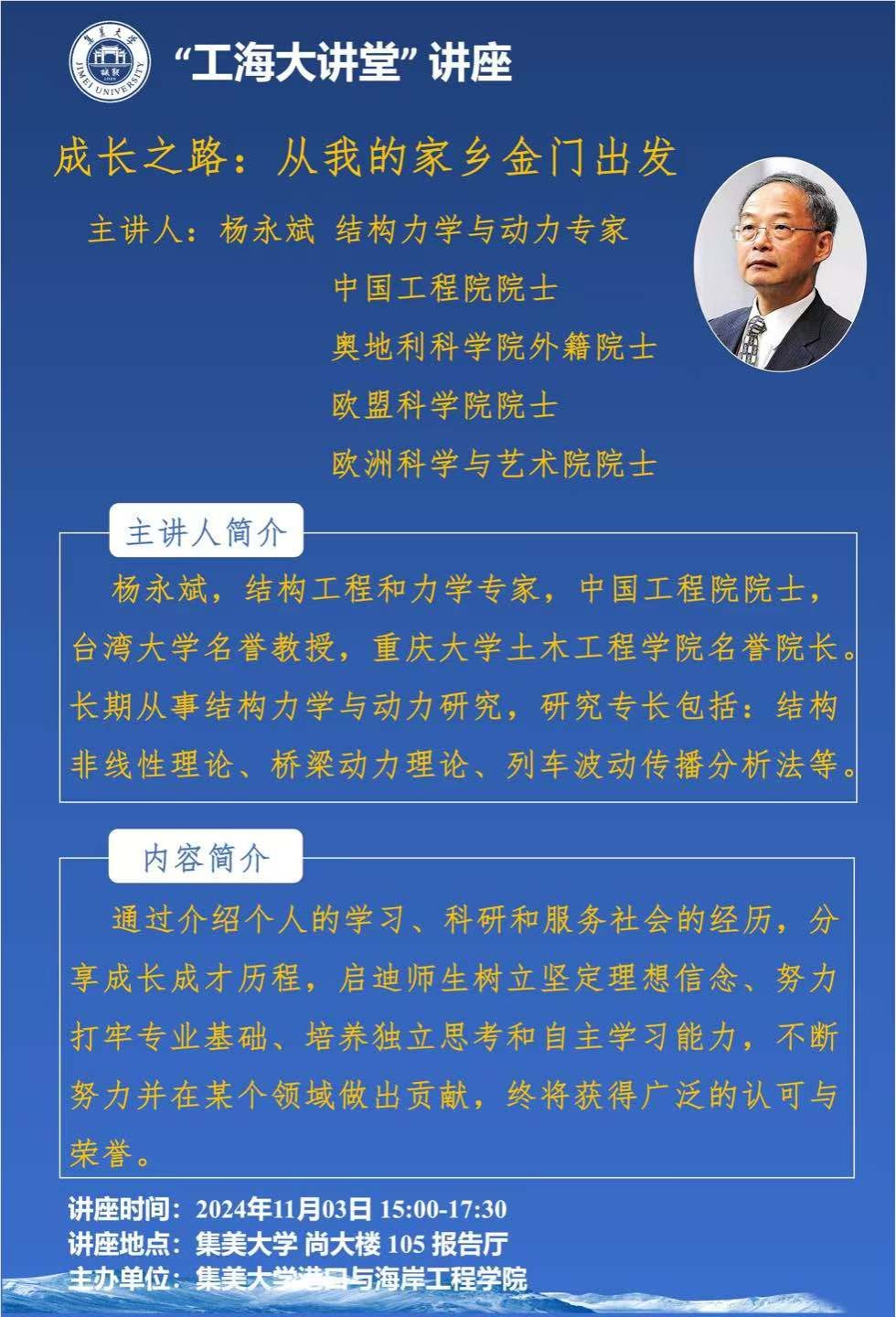“工海大讲堂”讲座:成长之路:从我的家乡金门出发