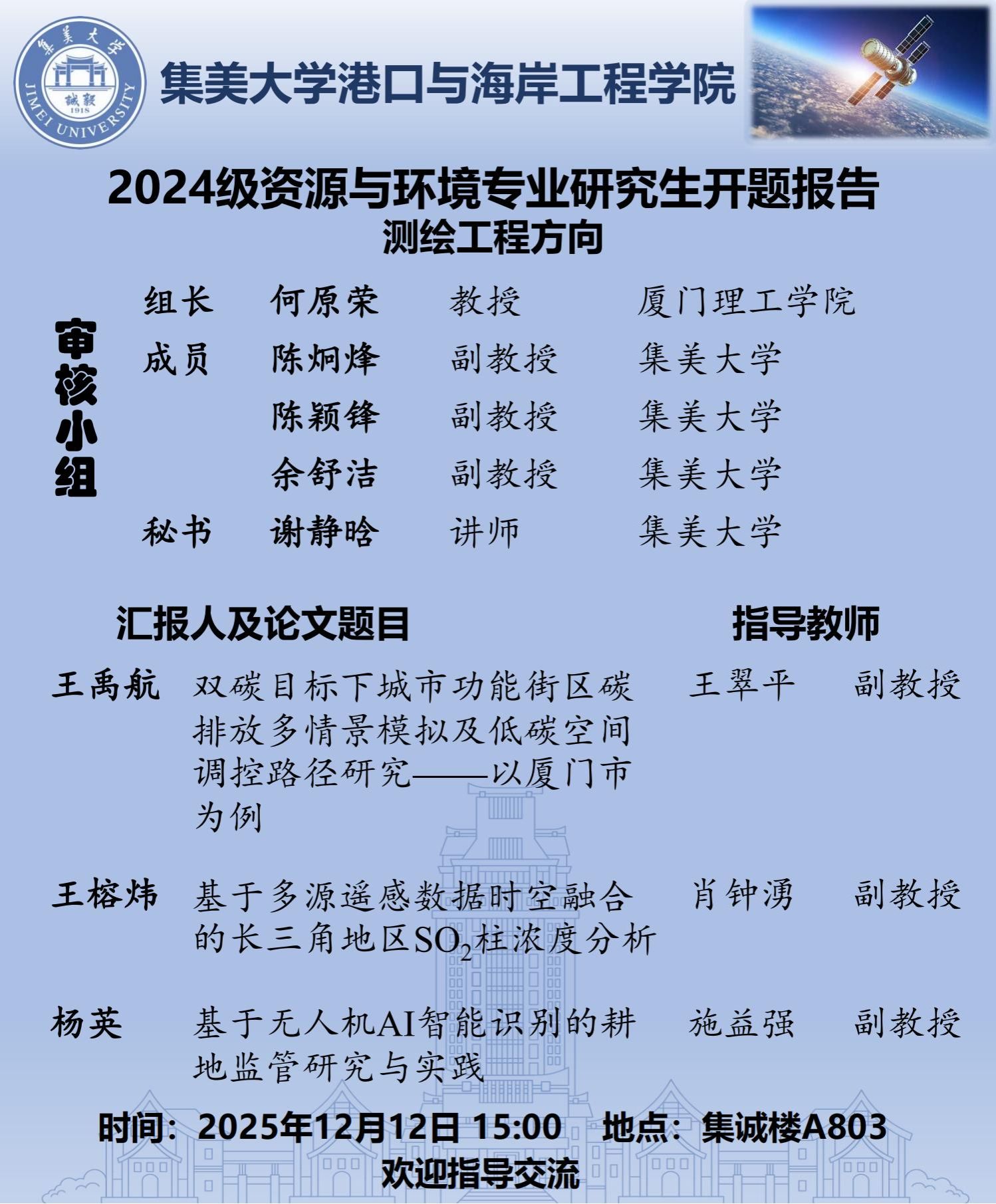 2024级资源与环境专业硕士研究生论文开题答辩公告(第3场)